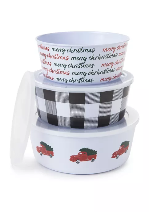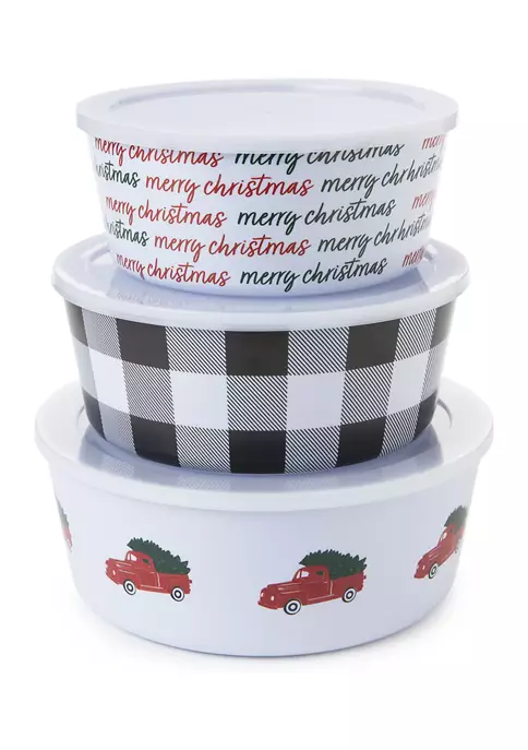 Pack up holiday dinner leftovers in this festive, charming set of 3 melamine to-go containers from Joyland!