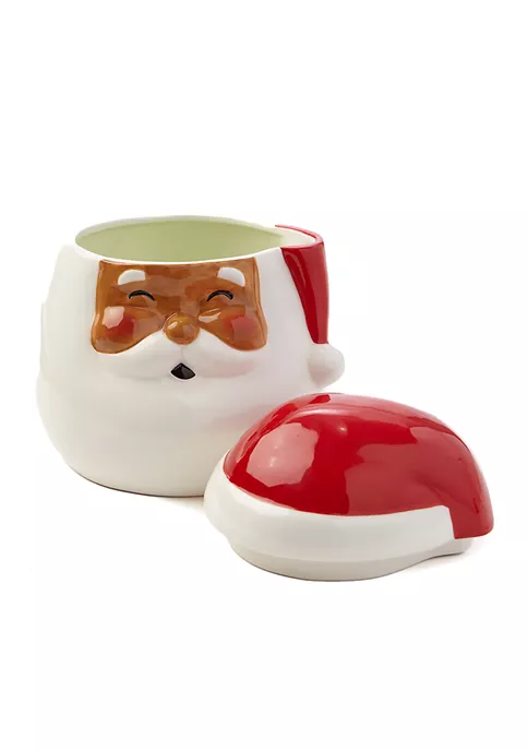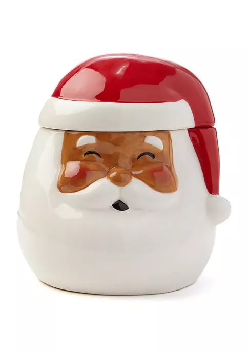 Made of shimmery dolomite, this cookie jar from Joyland is designed to look like jolly ol’ Santa.