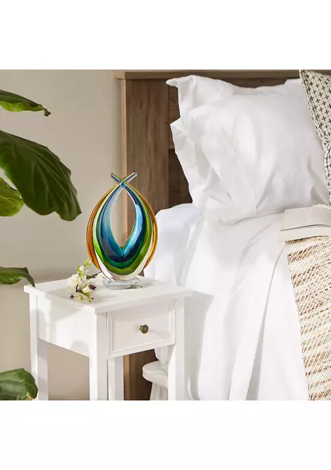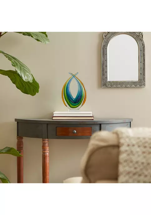 Decorate your home indoor or out with this sophisticated statue! Use as a table centerpiece, shelf ornament, or to class up your living room, this statue will add an air of elegance to any space. An amazing housewarming gift, this statue will fill any home with style and regality! Modern glass art weighs 4.8 lbs. and measures 7.25 inches by 3.25 inches by 11.25 inches. Made of durable glass to create a beautifully detailed sculpture. Class up your home with this exquisite statue! Place on your fireplace mantel, a shelf, or a tabletop surface to as a stylish and sophisticated display piece. To clean your statue, dust lightly or wipe with a damp cloth as needed. Cool hues of green, gold and blue makes this a statement accent for your living room, dining room, or anywhere you want a drop of cool, sophisticated style. Each art piece is individually hand-crafted for its unique beauty and therefore might be slightly different from the picture shown here.