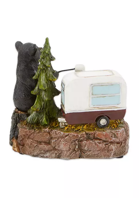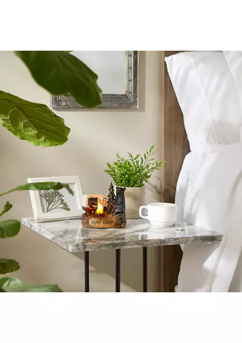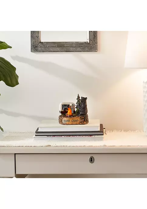 Decorate your home indoor or out with this lighted statue! Use it to spruce up your garden, light up a pathway, accompany a vegetable patch, brighten up a patio, or even to adorn a sunny shelf. An amazing housewarming gift, this statue will light up any home and garden space with cheer and whimsy! Bear camping figurine weighs 0.6 lbs. and measures 5.25 inches by 3.5 inches by 5 inches. Made of polyresin, plastic, LED light to create a detailed and durable sculpture. A sweet addition to your front or backyard garden, this statue will make your outdoor space feel instantly more inviting. Place near a pond, fountain, flower or vegetable garden and the light will provide a soft glow at night. To clean your figurine, dust lightly or wipe with a damp cloth as needed. Let this camping bear family keep you company. Detailed figurine displays a bear family around a fire while a little baby bear peeks out of the camper’s window. Makes a playful addition to your indoor or outdoor space!