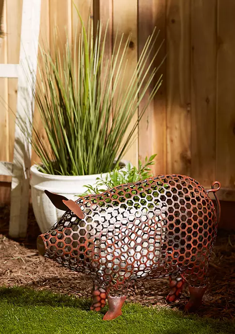 Decorate your home indoor or out with this sculpture. Use it to spruce up your garden, mark a pathway, accompany a vegetable patch, brighten up a patio, or even to adorn a sunny porch. An amazing housewarming gift, this statue will light up any home and garden space with cheer and whimsy. The garden decor weighs 1.8 lbs. and measures 17.5×6.5×12.5 inches Sculpture is made of durable iron. Perfect for both indoor and outdoor use. Place in kitchen to add instant charm. Also a sweet addition to your front or backyard garden, this sculpture will make your outdoor space feel instantly more inviting. To clean your figurine, dust lightly or wipe with a damp cloth as needed. Charming pig with a curled tail is a charming addition to any indoor or outdoor space.