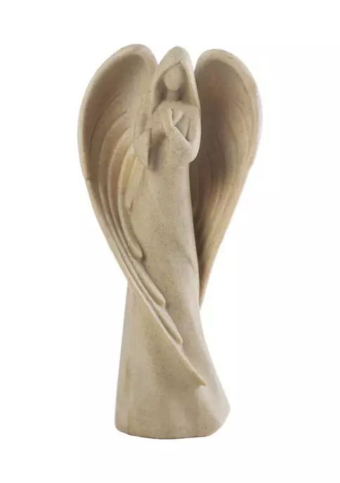 With wings folded in a symbolic gesture of love and guardianship this abstract angel statuette is the perfect subtle display of faith to adorn any home or sacred space. It’s warm sandstone like texture and minimalistic features makes it a gorgeous and modern spiritual figurine that represents a variety of moral values. Perfect as a gift for first communion, confirmation or any sacred ceremony. The angel measures 4.5×2.38×9.25 inches with hands clasped to the heart in devotion. Made from durable and detailed Polyresin to capture the essence of faith. This angel figurine watches over the home and protects the faithful within. It can be used as elegant home dΓ©cor or as a spiritual presence on any prayer table. Wipe with a dry/damp cloth or dust lightly to maintain this statue’s subtle beauty. Represents love, protection, maternity, humility, and caring making it the perfect gift for both a new or established home and family.