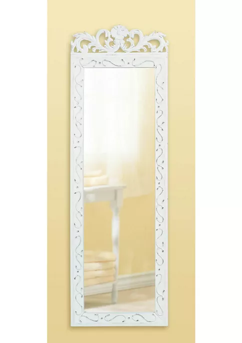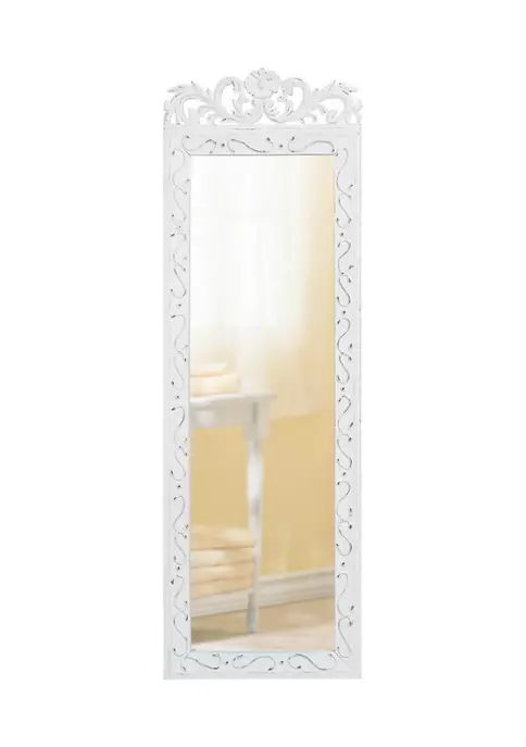 Brighten up your home with this reflective wall mirror that is both a beautifully crafted and functional home décor piece. Lightweight and sturdy, this mirror can easily be hung on your wall or placed on a table as a stunning display. Great as a gift for friends or yourself, this mirror will perfectly compliment your home for years to come. The mirror weighs 4.7 lbs. and measures 9.87 inches by 0.5 inches by 30.5 inches. Made of MDF wood and pine wood to create a home décor piece that reflects your amazing design style. Make your space seem bigger and more beautifully decorated with this gorgeous mirror. Perfect as hallway embellishment, functional bathroom décor, or a statement living room piece, this mirror is both stunning and versatile. To clean your beautiful mirror, dust lightly or wipe with damp cloth as needed. A floral crown and embossed flourishes grace a weathered white wood frame mirror that reflects life’s romantic moments.