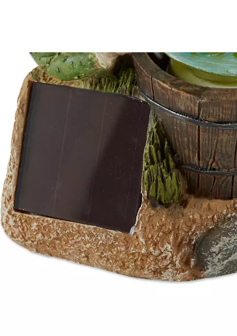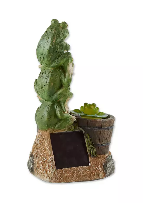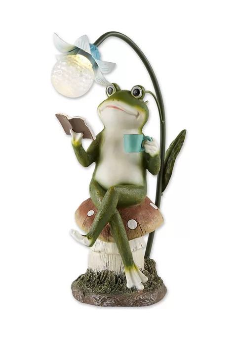 Decorate your home indoor or out with this solar light statue! Use it to spruce up your garden, light up a pathway, accompany a vegetable patch, brighten up a patio, or even to adorn a sunny shelf. An amazing housewarming gift, this statue will light up any home and garden space with cheer and whimsy! Frog reading on a turtle weighs 2.4 lbs. and measures 10.5x7x11 inches. Made of durable polyresin, stone powder, and plastic to create a beautifully detailed sculpture. A sweet addition to your front or backyard garden, this statue will make your outdoor space feel instantly more inviting. Place near a pond, fountain, flower or vegetable garden and the solar light will provide a soft glow at night. To clean your statue, dust lightly or wipe with a damp cloth as needed. Make your garden look like a whimsical place filled with magic and wonder with this adorable statue of a charming frog riding a turtle. This adorable solar statue is a great addition to your front walk, garden, or patio.