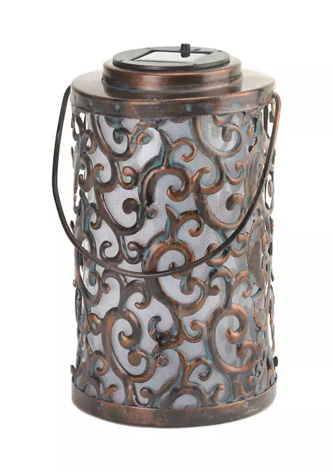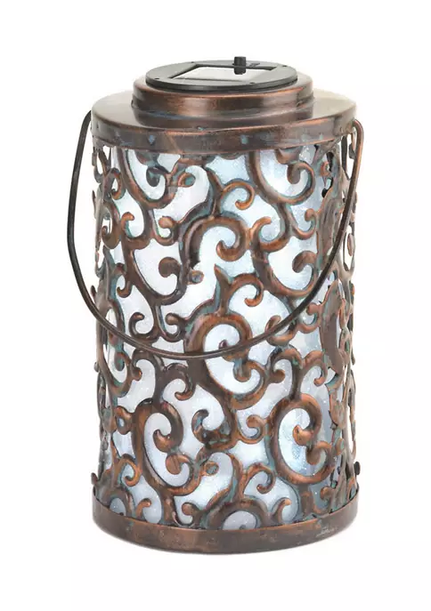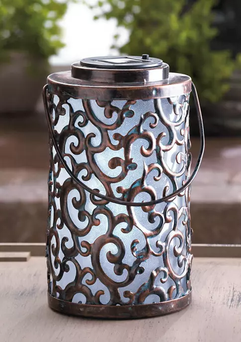 Place a candle or LED of your choice inside the lantern to illuminate your space in a soft and serene glow. Use to create a centerpiece for parties or special events, display on a countertop or coffee table, or light up your outdoor space with flickering light. This lantern is the perfect way to enhance your home’s decor! The lantern weighs 0.8 pounds and measures 5x5x8.25 inches. This beautifully crafted lantern is made of iron, solar panel, and plastic for durable and stunning dΓ©cor. Whether hanging or stationary, this lantern will cast beautiful light wherever you display it! Removable glass and wood panel allows the easy replacement of your choice of a candle or LED to light up the space and create a memorable home dΓ©cor piece. To clean your lighting dΓ©cor, dust lightly or wipe with a damp cloth as needed. The gorgeous iron swirls and flourishes make this solar-powered lantern a beautiful accent for any outdoor space. The built-in solar panel at the top will soak in the sun’s rays all day long, and by night the interior will glow with magical light.