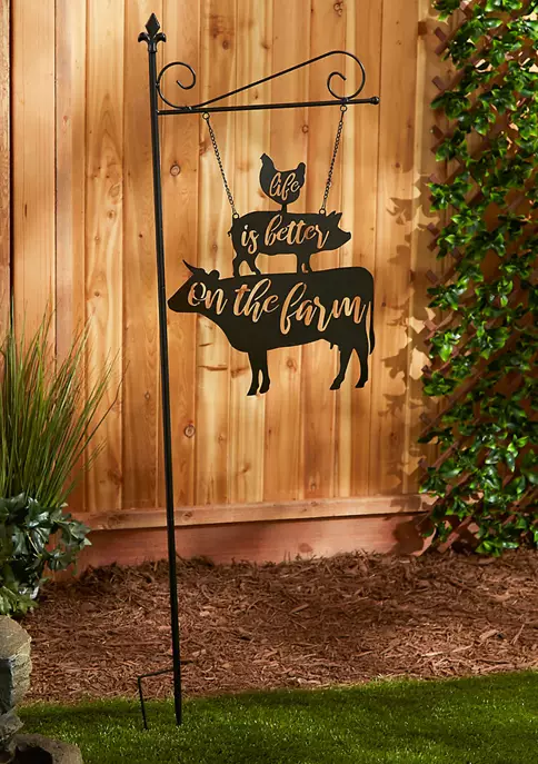 We offer full collections of trend based designs, bringing you fresh, innovative lines of quality home products for every season. Let our garden decor become a valuable part of your life. Charming Life is Better on the Farm stake is made of iron and measures 16×52 inches. Made of durable iron to create beautifully detailed garden decor. A sweet addition to your front or backyard garden, this garden decor will make your outdoor space feel instantly more inviting. Place near a pond, fountain, flower or vegetable garden and the stake will add a playful touch to your space. To clean your garden sign dust lightly or wipe with a damp cloth as needed. Simply stick the stake into the soil and add charm to your garden.
