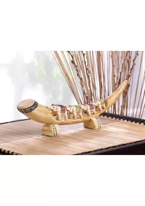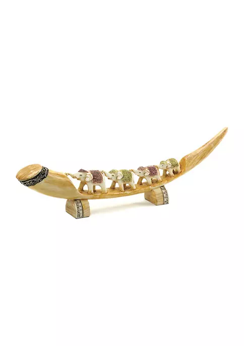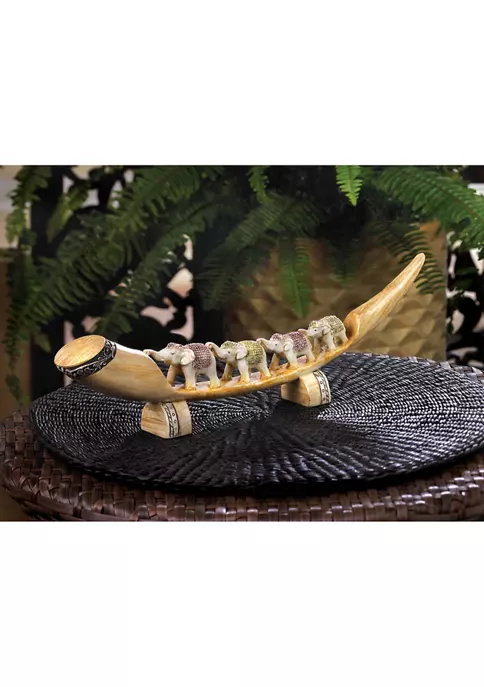 Decorate your home indoor or out with this sophisticated statue! Use as a table centerpiece, shelf ornament, or to class up your living room, this piece will add an air of elegance to any space. An amazing housewarming gift, this model will fill any home with style and regality! This home decor weighs 1.0 lbs. and measures 15.5 inches by 1.75 inches by 4.5 inches. Made of polystone to create a beautifully detailed sculpture. Class up your home with this exquisite piece! Place on your fireplace mantel, a shelf, or a tabletop surface to as a stylish and sophisticated display model. To clean your dรฉcor, dust lightly or wipe with a damp cloth as needed. Marvel at four elephants in a row with style and grace that will add a dash of the exotic to your mantel or table. This features a tusk-shaped base accented with pretty details that is the perfect display for the quartet of elephants wearing pink and green ensembles.
