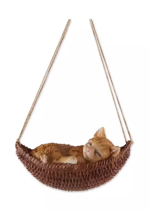 Decorate your home indoor or out with this figurine! Use it to spruce up your garden, mark a pathway, accompany a vegetable patch, brighten up a patio, or even to adorn a sunny shelf. An amazing housewarming gift, this statue will light up any home and garden space with cheer and whimsy! Napping kitten weighs 0.6 lbs. and measures 7×3.75×3.75 inches. Made of polyresin to create a detailed and durable sculpture. A sweet addition to your front or backyard garden, this statue will make your outdoor space feel instantly more inviting. Place near a pond, fountain, flower or vegetable patch to add a charming accent. To clean your figurine, dust lightly or wipe with a damp cloth as needed. A cute dΓ©cor piece to brighten up your day, this hanging kitty figurine is a must-have for any cat lover. Suitable for indoor and outdoor display, this cat figurine features an adorable orange tabby taking a catnap in a hammock. Hang this cat figurine from your kitchen window or front porch to enjoy a daily dose of cuteness or give as a unique gift to the animal lover in your life.