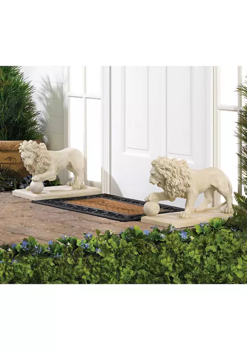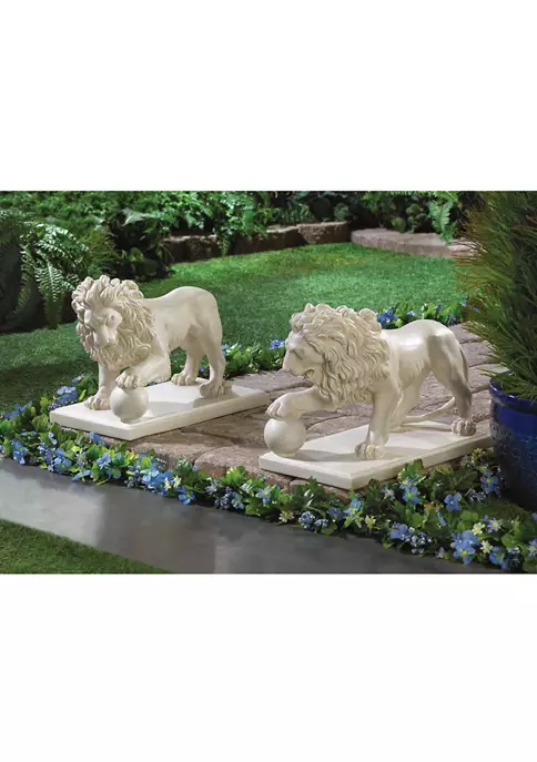 Decorate your home indoors or out with this stately statue! Use it to spruce up your garden, accompany a vegetable patch, brighten up a patio, or beautify your front yard. An amazing housewarming gift, this statue will fill any home and garden space with style and regality! Made of durable polyresin and fiberglass to create a beautifully detailed sculpture. A regal addition to your front or backyard garden, this statue will make your outdoor space feel instantly more inviting. Place near a pond, fountain, flower, or vegetable garden to add a touch of stately dΓ©cor! With a paw perfectly poised atop an orb, this matching pair of magnificent lion statues will guard your garden or walkway and add a regal flair to your kingdom.