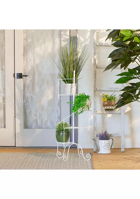 Show off your green thumb with this gorgeous plant stand! Perfect for both indoors and outdoors, this stand will look good anywhere in your home from a statement porch piece, sunroom storage, garden enhancement or patio accent. Customize with the greenery of your choice and watch your home bloom! The plant stand weighs 5.2 lbs. and measures 17×16.5×39 inches. Made of durable iron that will beautifully and securely display your flora. This plant stand is perfect for holding your favorite potted plants or trinkets of any kind, both indoors and outdoors. Place in a sunroom, patio, deck, or porch to add stylish home dΓ©cor and greenery to your space. To clean your plant dΓ©cor, wipe with a damp cloth as needed. Give four of your favorite plants a supremely stylish showcase! This metal plant stand features four mesh platforms, a curved ‘banister’ and four scrolling feet below. Standing at more than three feet tall, it’s a grand way to exhibit your green thumb.