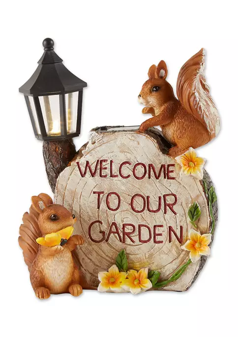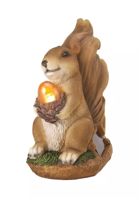 Decorate your home indoor or out with this solar light statue! Use it to spruce up your garden, light up a pathway, accompany a vegetable patch, brighten up a patio, or even to adorn a sunny shelf. An amazing housewarming gift, this statue will light up any home and garden space with cheer and whimsy! This statue weighs 0.8 lbs. and measures 3.75×4.5×7.25 inches. Made of durable plastic, polyresin, and a solar panel, LED lights to create a beautifully detailed sculpture. A sweet addition to your front or backyard garden, this statue will make your outdoor space feel instantly more inviting. Place near a pond, fountain, flower or vegetable garden and the solar light will provide a soft glow at night. To clean your statue, dust lightly or wipe with a damp cloth as needed. This friendly little squirrel will brighten your day with his sweet face, and at night hisΒ prized acorn will light up your yard or garden. This finely detailed yard statue features a built-in solar panel to power the acorn’s light bulb.