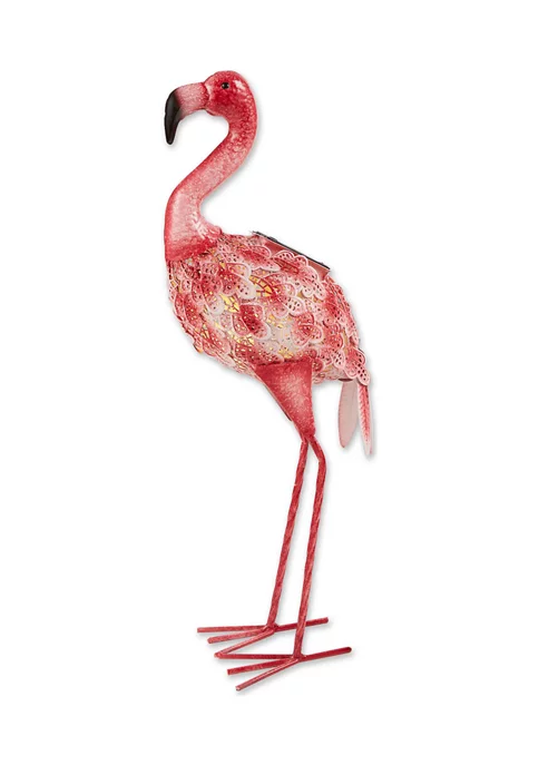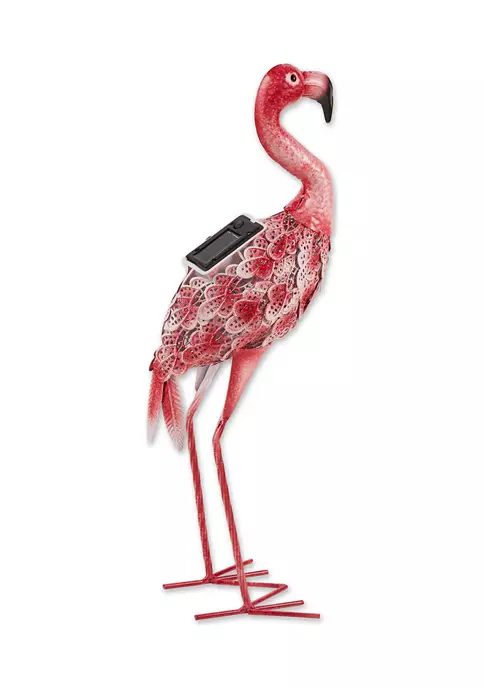Decorate your home indoor or out with this solar light statue! Use it to spruce up your garden, light up a pathway, accompany a vegetable patch, brighten up a patio, or even to adorn a sunny shelf. An amazing housewarming gift, this statue will light up any home and garden space with cheer and whimsy! Beautiful flamingo with solar light weighs 1.8 lbs. and measures 12x5x20.25 inches. Made of durable iron, plastic, and a solar panel to create a beautifully detailed sculpture. A sweet addition to your front or backyard garden, this statue will make your outdoor space feel instantly more inviting. Place near a pond, fountain, flower or vegetable garden and the solar light will provide a soft glow at night. To clean your statue, dust lightly or wipe with a damp cloth as needed. Add a fun pop of color to your outdoor space with this pink lawn flamingo. The yard flamingo includes a solar panel on the back that lights up underneath the feathers for a whimsical garden display anytime of day. The iron frame features gorgeous feather-like details that will make guests take a second look.